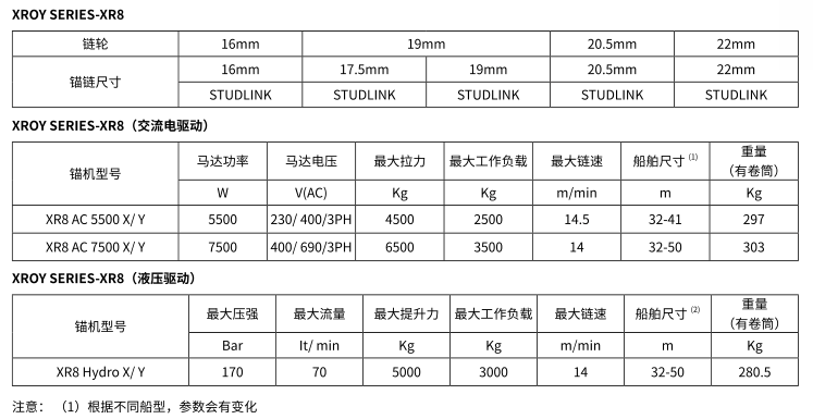 | 型号 | 马达功率 | 马达电压 | 工作负载 | 船舶尺寸 |