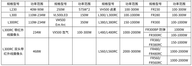 | FR480/FR480RC | 100W-2000W | 643m-2.03km |