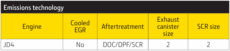 与约翰迪尔4.5升单涡轮增压发动机相比,整机尺寸缩减20%至30% 后置齿轮传动系统确保运行静谧 免维护液压气门间隙调节 符合美国EPAFinal Tier 4及欧盟Stage V 排放标准无需EGR