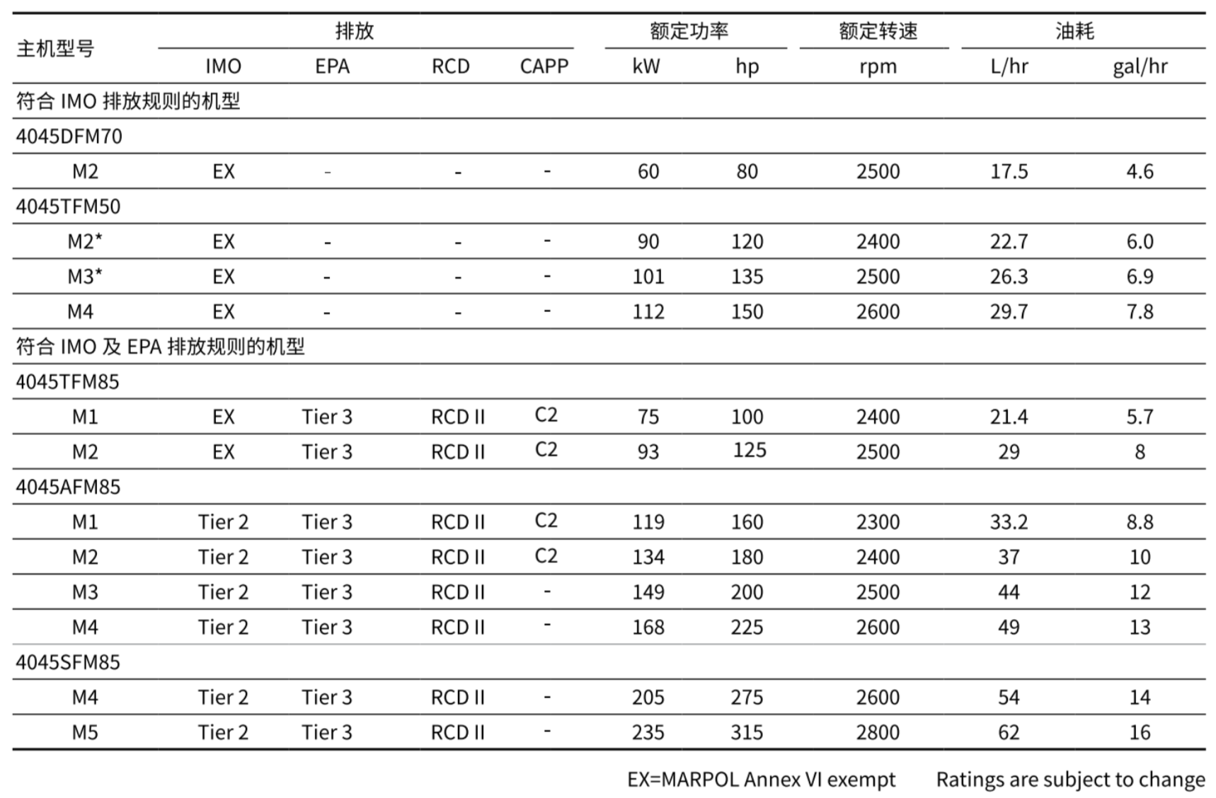 为了更好的满足所有船只的工况和工作强度,JohnDeere对自己的所有机型进行了M1-M5的等级划分,以便用户更好地为自己的船只进行设备选型及匹配。