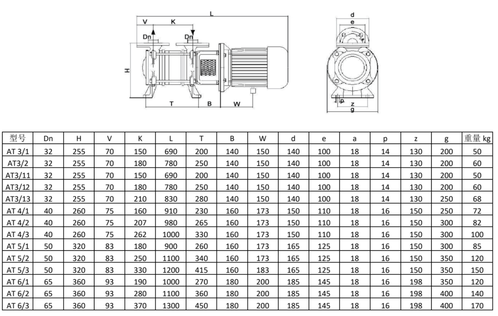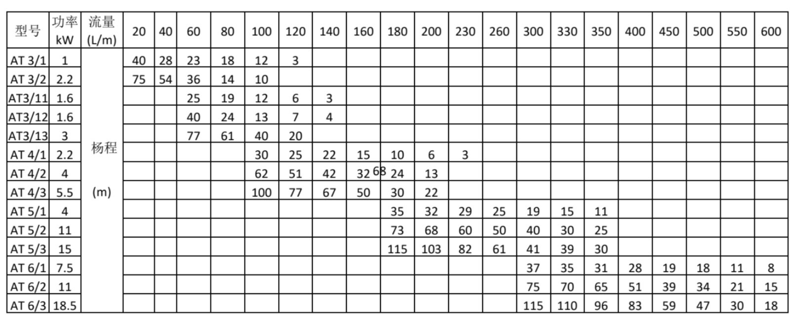 | AT 3/2 | 1-300L/m | 5-10bar | 0.05-5kW |