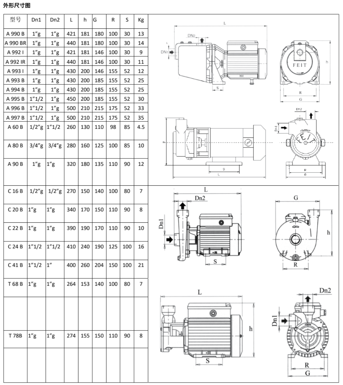 | A90B | 1-300L/m | 0.1-5bar | 0.05-5kW |