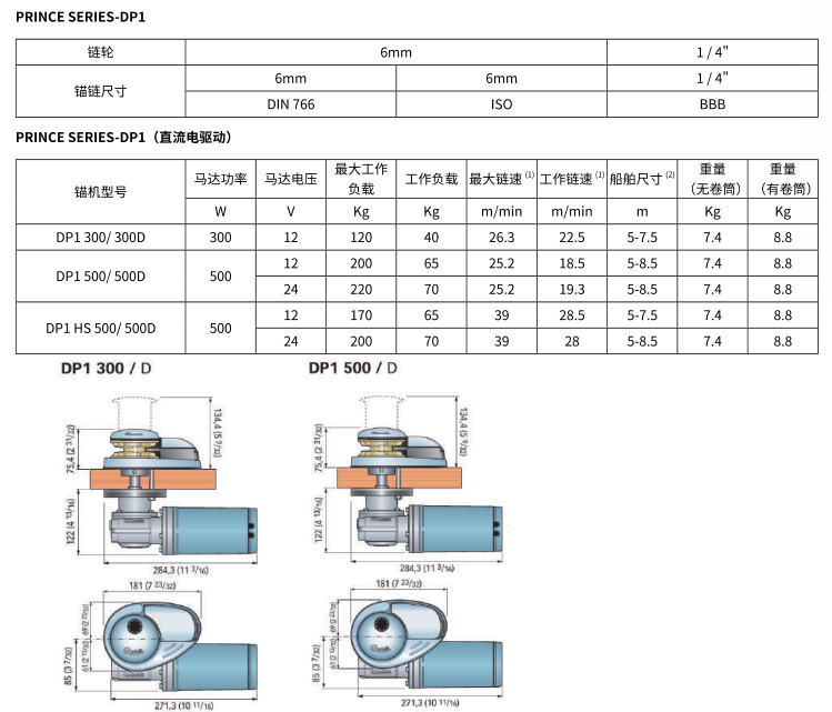 | DP1 HS 500/500D | 300W-3000W | 12V/24V | 40kg-310kg | 5m-27m |