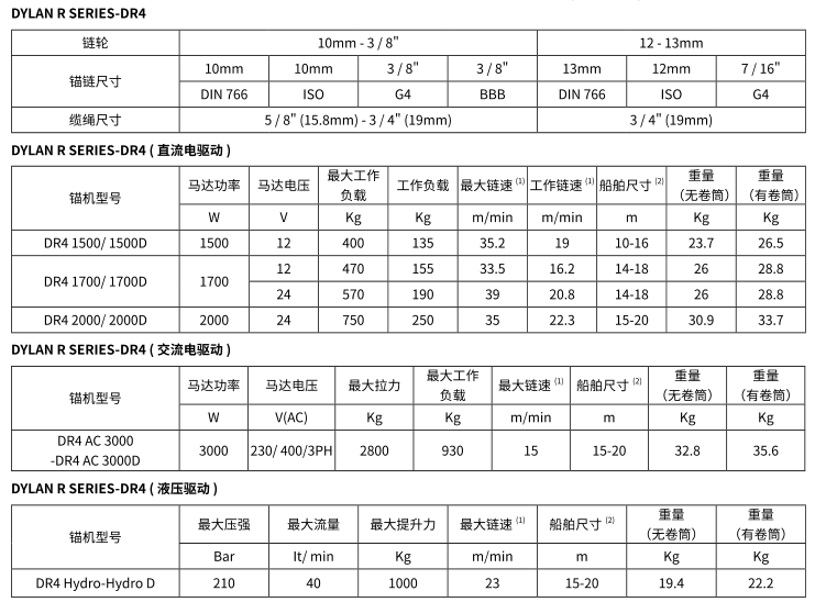 | DR4 1700/1700D | 300W-3000W | 12V/24V | 40kg-310kg | 5m-27m |