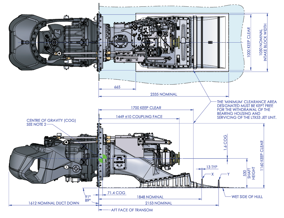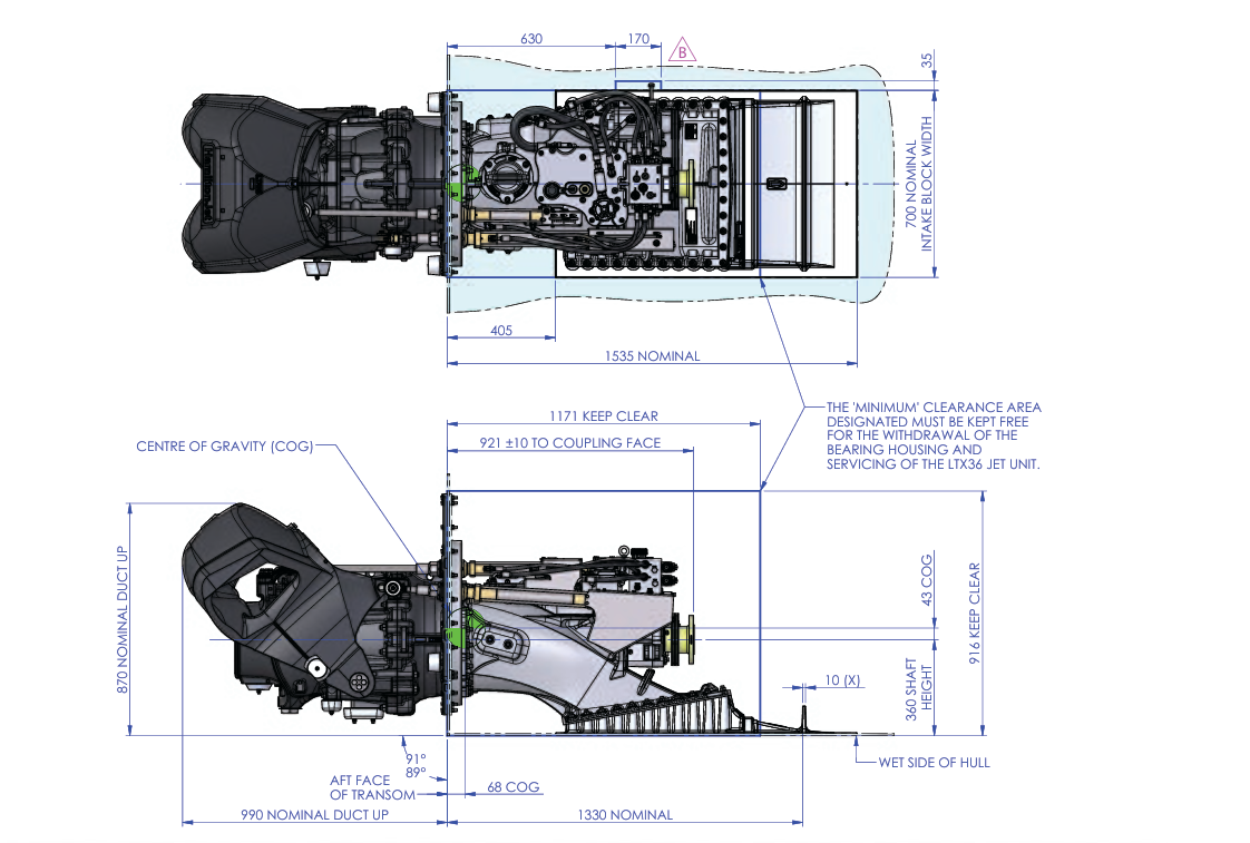 LTX 喷水推进器具备低速高效、轻量化及设计精简的特性。凭借大口径喷嘴、较低的输入能耗、较低的射流速度以及轻量化结构,该喷水推进器旨在在低至中速工况下,媲美传统推进系统的性能、能源效率与系柱推力。